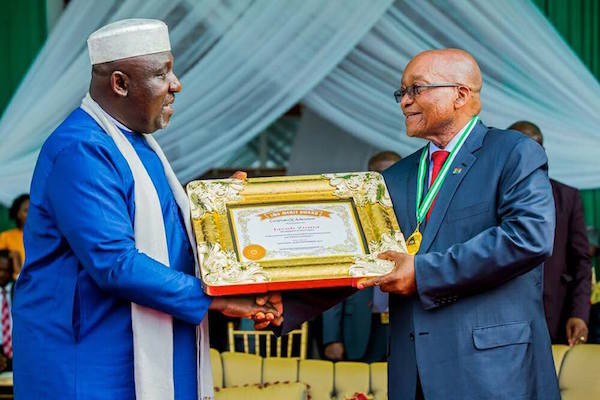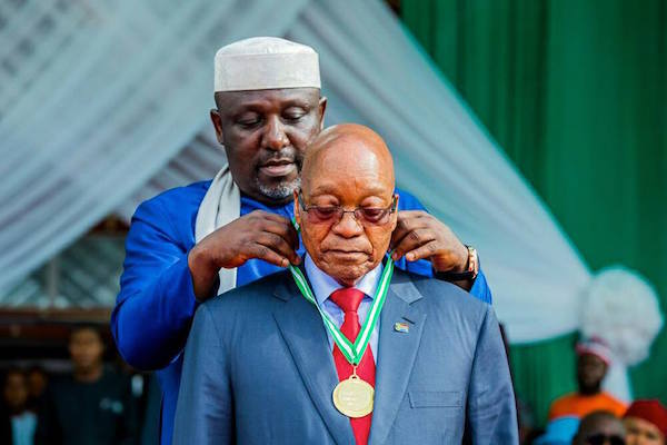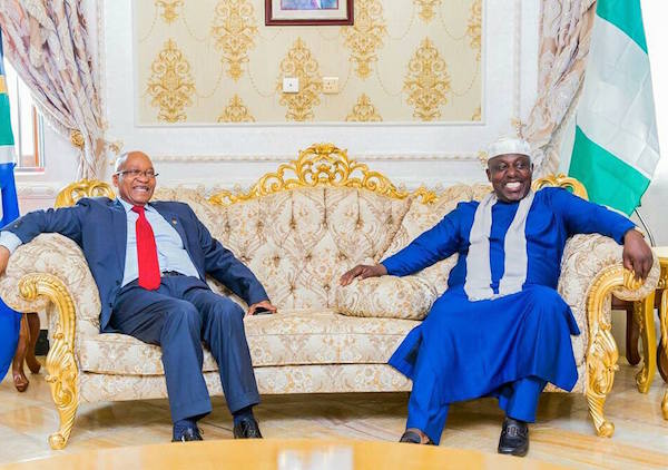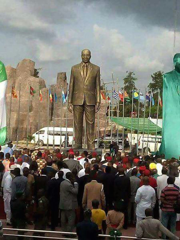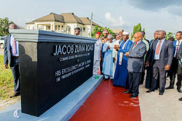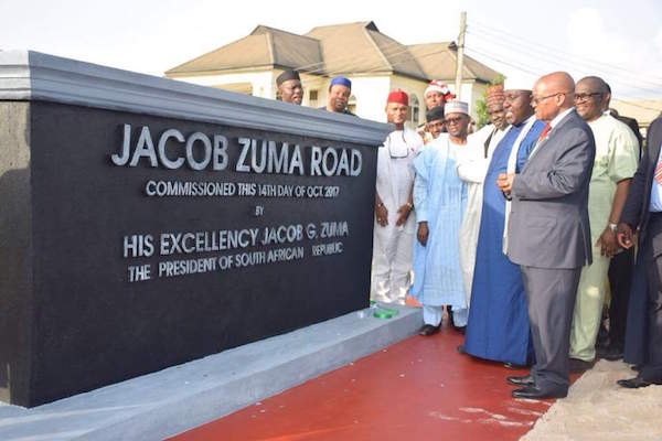 Imo State Governor Rochas Okorocha has unveiled a giant statue of South Africa’s President Jacob Zuma and named a road after him during his visit to Owerri, the state capital this weekend.
