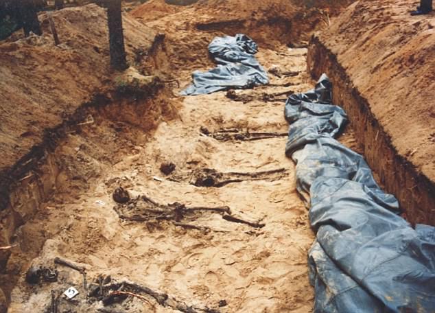 In 1983, Mnangagwa led a major crackdown in Matabeleland, in the southwest of Zimbabwe. Tens of thousands of people were killed. Pictured: Bodies found in Matabeleland after the massacre