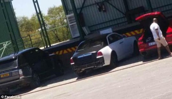 A rare £250,000 Rolls Royce Ghost, a Porsche and a Range Rover were damaged as they were driven at night, in convoy through back roads of Botswana to a safe haven in South Africa.