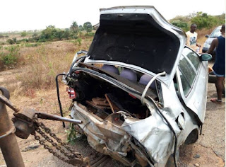 The vehicle she boarded fell off a bridge as the driver was trying to avoid a head-on-collision with an oncoming trailer. The vehicle was badly mangled as it fell into a water body down the bridge.