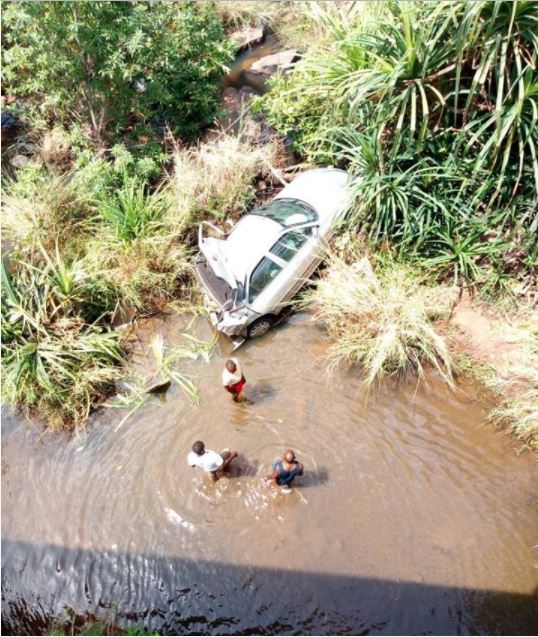 At that point, our car after many turns, leaped off the bridge and dropped from the top of that bridge down to the river…………..All the while, we were all screaming and MY GOD, that fall was like eternity cause we had no idea where or what we were falling into……..The scariest part was the impact, can’t even explain it……….but GUESS WHAT? Five of us all came out alive. Did I mention we had a generator filled with fuel in the boot of the car? I mean we fell from there, inside the river, see the height!!