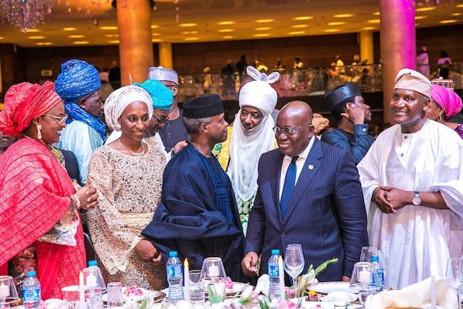 World’s richest man, Bill Gates, Ghana’s President Nana Akufo-Addo, Nigeria’s Vice-President Yemi Osinbajo and his wife Dolapo; wife of the President, Hajiya Aisha Buhari; Speaker, House of Representatives, Mr. Yakubu Dogara; the Emir of Kano, Alhaji Muhammadu Sanusi; and other eminent Nigerians on Friday attended the wedding reception of Alhaji Aliko Dangote’s daughter, Hajiya Fatima, and her groom, Jamilu Abubakar in Lagos.