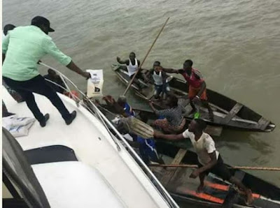 Hon. Julius Pondi, member representing Burutu Federal Constituency in Delta State was pictured sharing sachet garri among some of his constituents while on a boat cruise.