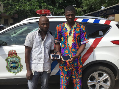 The suspects, Semiu Obanla, 35, and David Edet, 32, both married, were arrested at an hotel in Abule-Egba, Lagos after a stolen phone was tracked to their hotel where they lodged.