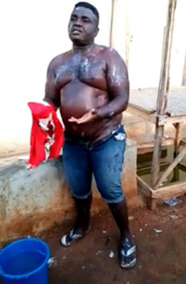Lagos, a city where anything can happen. This man was seen taking his bath at a T-junction in broad day light.