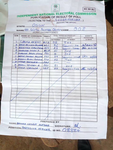 The results coming out of the different polling units in the Osun State governorship election are interesting so far. Most of the individual official results show that the contest has been reduced to a 3-horse race.