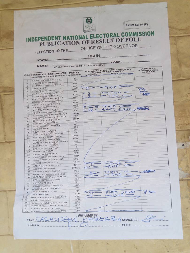 The results coming out of the different polling units in the Osun State governorship election are interesting so far. Most of the individual official results show that the contest has been reduced to a 3-horse race.