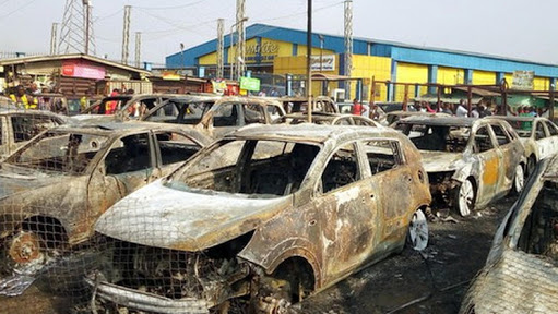 When The Punch visited the site, a total of 63 vehicles, 98 shops, four tricycles, six houses and one church were counted to have been razed by the fire, which reportedly began around 2am.