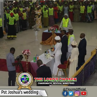 It was all shades of joy yesterday at the Corporate Headquarters of The Lord’s Chosen Charismatic Revival Ministries, venue of the glorious wedding, as the first son of the fastest growing church in Africa, Pastor Joshua Muoka together with his wife, Sis Ifunanya Favour Muoka, walked down the aisle.