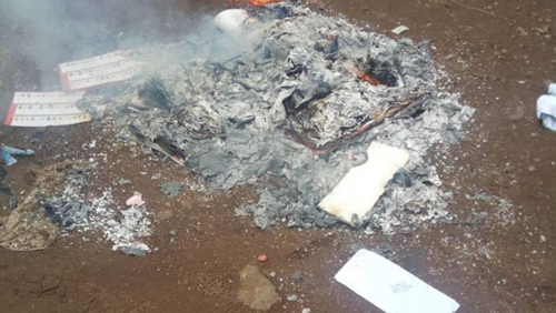 Some ballot boxes at Polling Unit 18 located at junction of Ohafia/Ago Palace Way, Okota in Oshodi/Isolo LGA of Lagos State have been set on fire.
