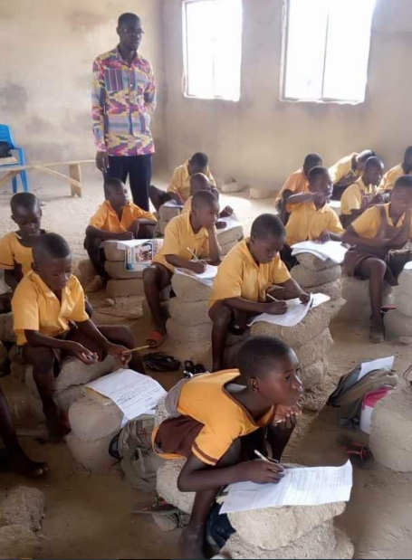 One of the Npower beneficiaries, Rainjames Akwu shared pictures from his PPA (Place of Primary Assignment) to Npower Discussion Group on facebook where pupils could be seen using stones as chairs and desks in a classroom in Nigeria.