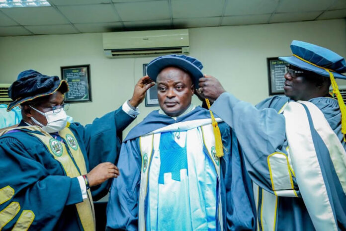 Top officials of the institute arrived the Assembly just before the resumption of plenary activities on Thursday after which the twin honours were bestowed on the Speaker, a statement by Eromosele Ebhomele, his Chief Press Secretary, said.