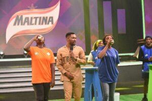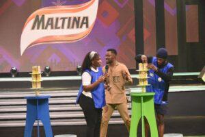 The studio audience was not left out of the fun. The show host Hero Daniels introduced the Maltina Drink Challenge. Two audience members representing Team Orange and Team Blue were tasked to finish a can of Maltina in the shortest time possible. Team Orange won and was rewarded with cans of Maltina.