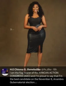 Social media has been buzzing since Nollywood actress turned politician Chioma Ifemeludike unveiled her official campaign photos ahead of the Anambra State Governorship Election 2025.