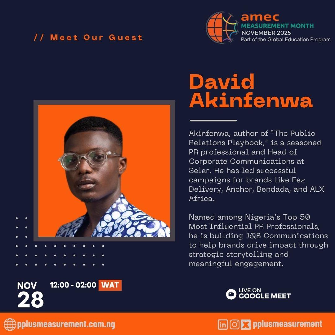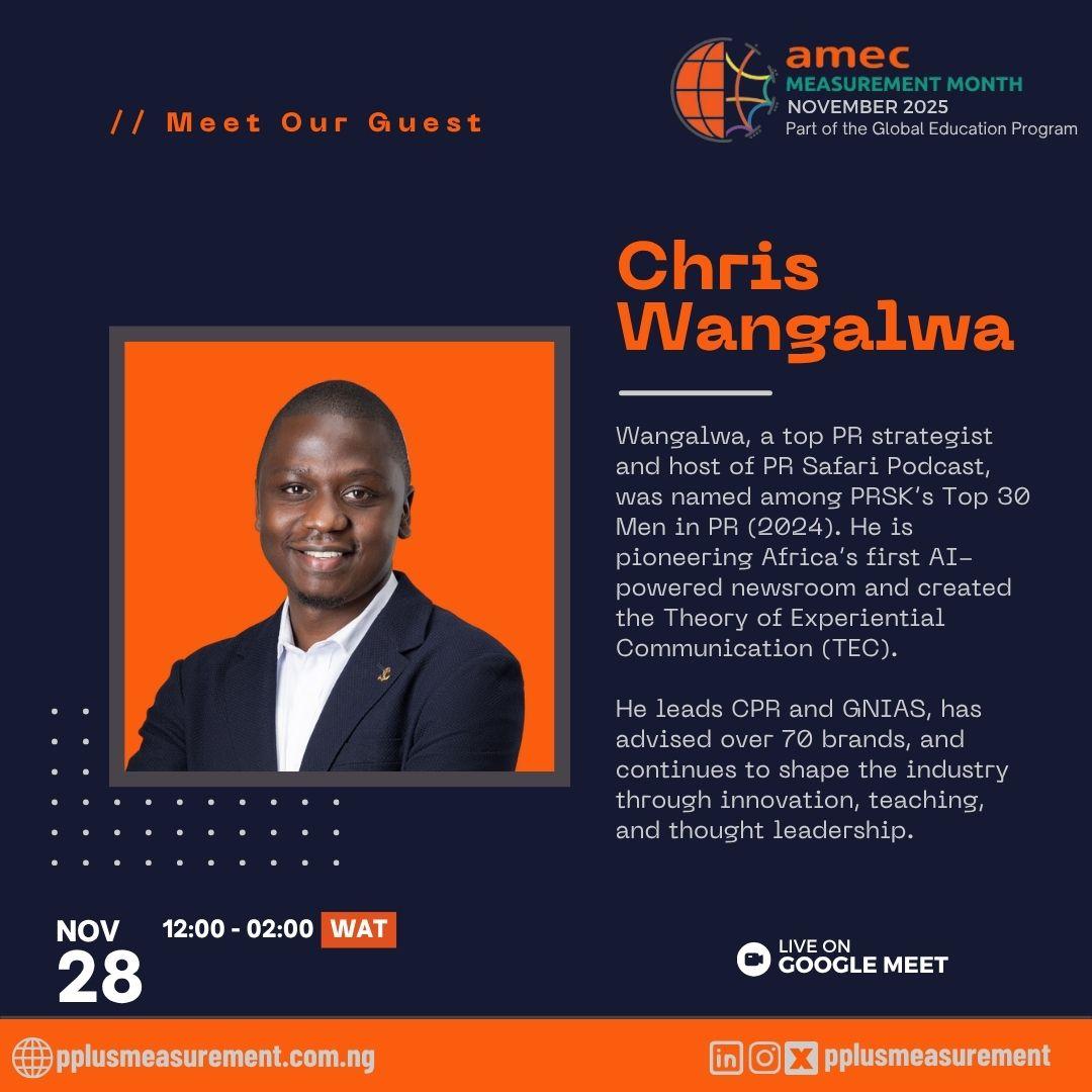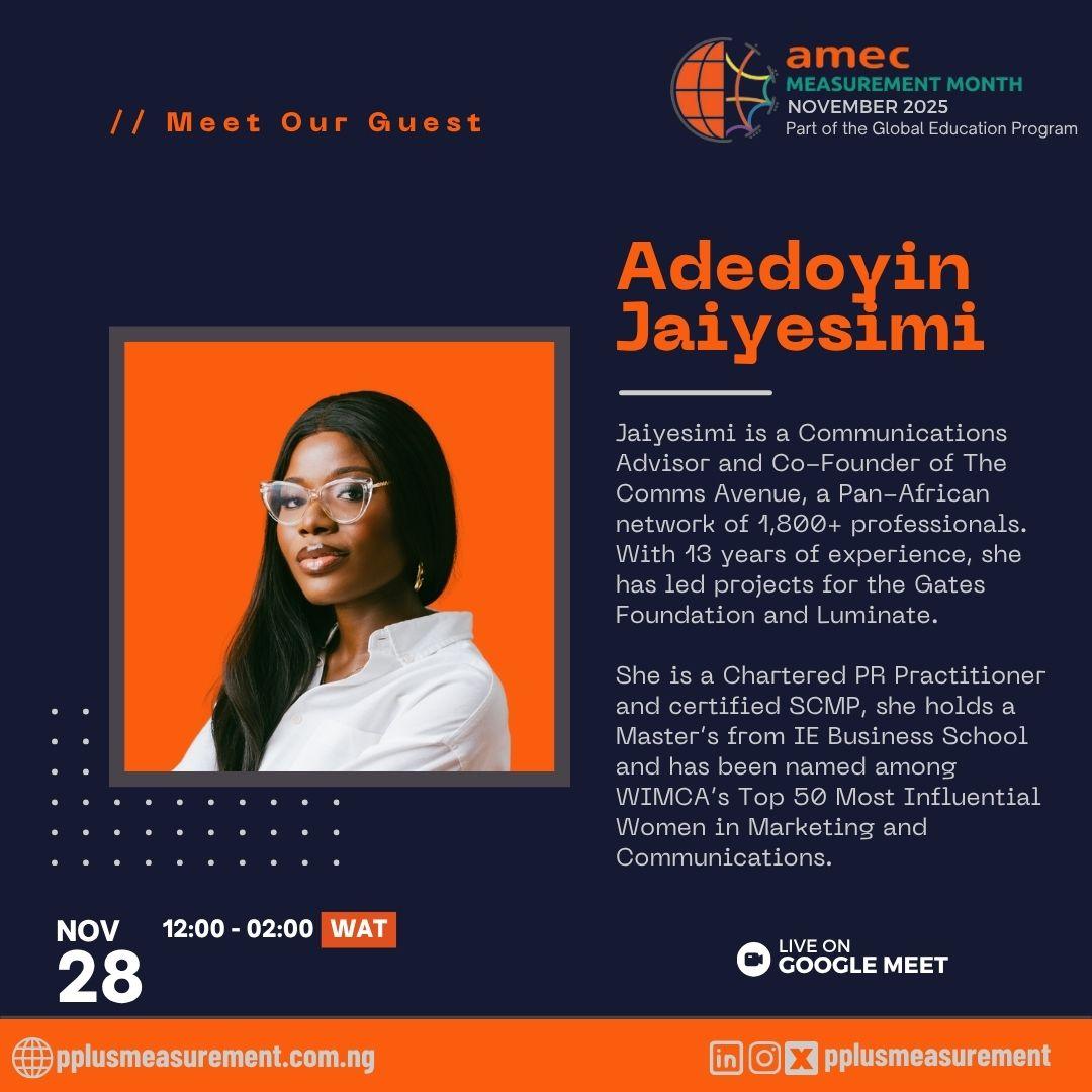P+ Measurement Services, Nigeria’s leading independent media intelligence and PR measurement agency, will proudly host the 2025 edition of AMEC Measurement Month in Nigeria on Friday, November 28, 2025, from 12:00 p.m. to 2:00 p.m. (WAT) via Google Meet.