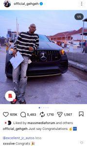 Popular influencer, Geh Geh splashes millions as he acquires a new Mercedes Benz GLE 53, reportedly worth N200 million.