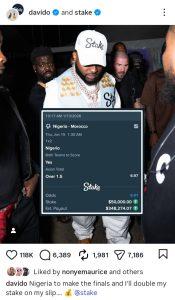 “Nigerians to make the finals and I’ll double my stake on my slip,” Davido wrote while sharing his slip.